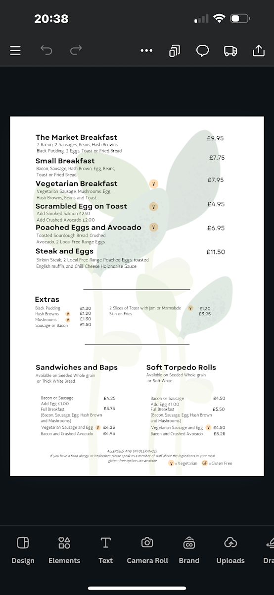 Dorchester Market Cafe Menu